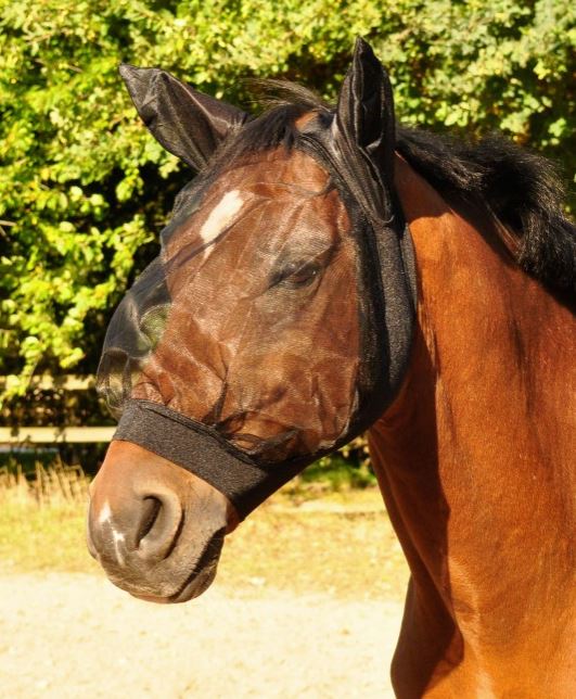Þægileg vörn gegn ágengum skordýrum, ver augu og eyru hestsins.