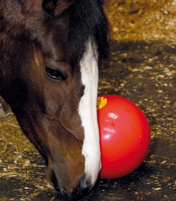 Leikbolti og fóðrari í einu. Hestinum er haldið uppteknum og hvattur til hreyfinga og lausnahugsunar.