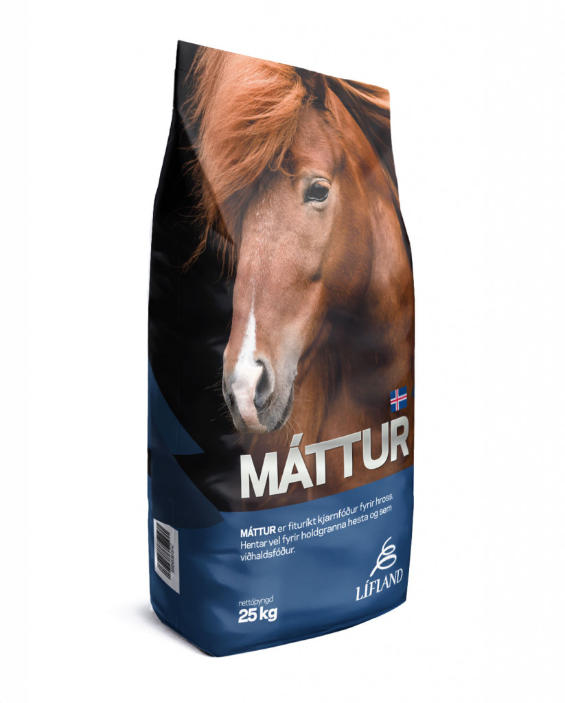 Máttur er fituríkt, kögglað kjarnfóður fyrir hross. Hentar vel fyrir holdgranna hesta og sem viðhaldsfóður.