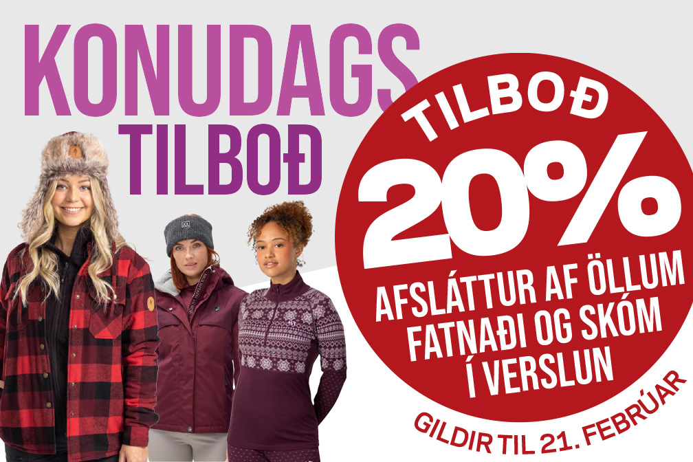 Í tilefni konudagsins er 20% afsláttur af öllum fatnaði og skóm í öllum verslunum Líflands 19. - 21. febrúar. Tilboðið gildir einungis í verslunum og ekki á vefnum. Athugið að öryggisvesti og hjálmar eru ekki á tilboði.