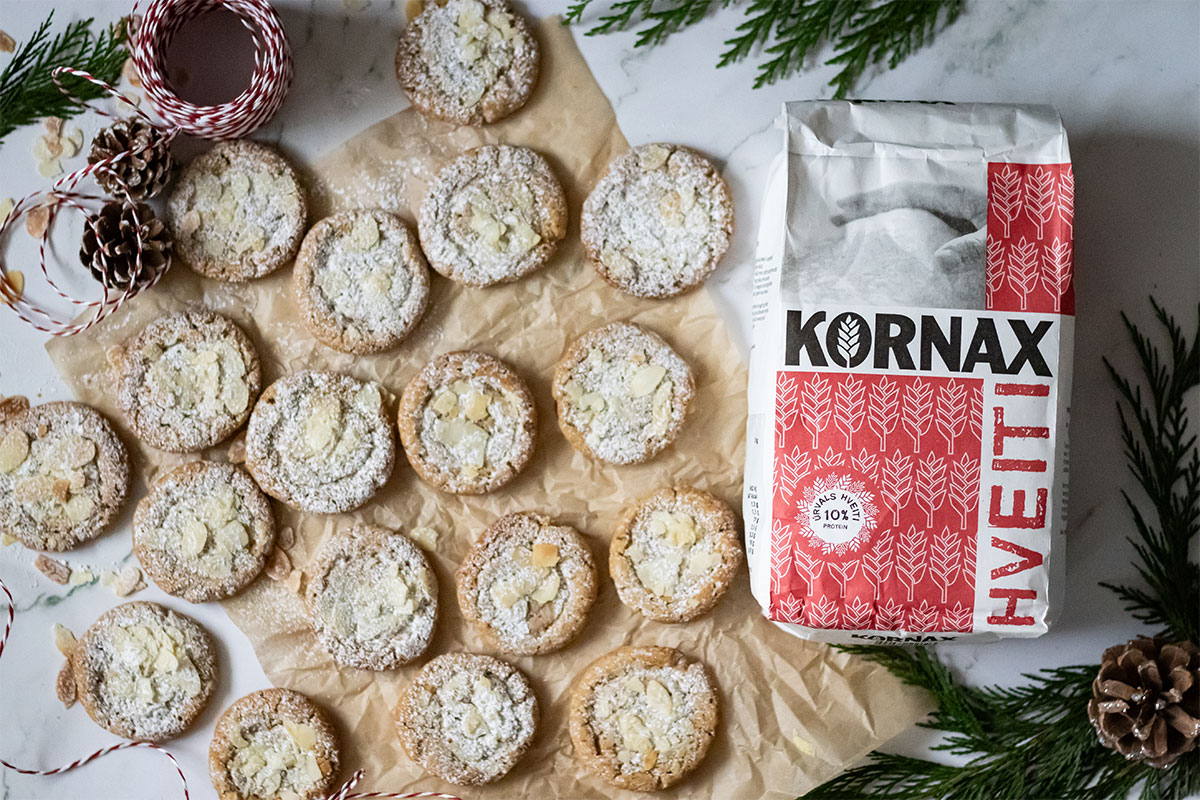 Ef þið eruð jafn hrifin af möndlu croissant og ég, mæli ég með því að þið staldrið aðeins við! Þessar möndlu-croissant smákökur eru fullkomin blanda af stökku og mjúku, sætu og örlítið söltu, gylltar og stökkar að utan en dásamlega mjúkar og léttar að innan. Af þeim er ríkulegt möndlubragð sem minnir á marsípan en mér finnst allt með möndlum ómissandi á aðventunni, hvort sem er í konfekt eða smákökur. Nóg af smjöri þarna líka og svo auðvitað sígilda rauða Kornax hveitið líkt og ég nota í öllum mínum kökubakstri.