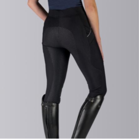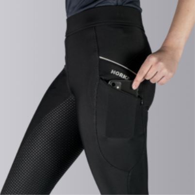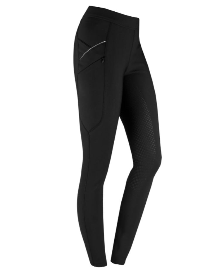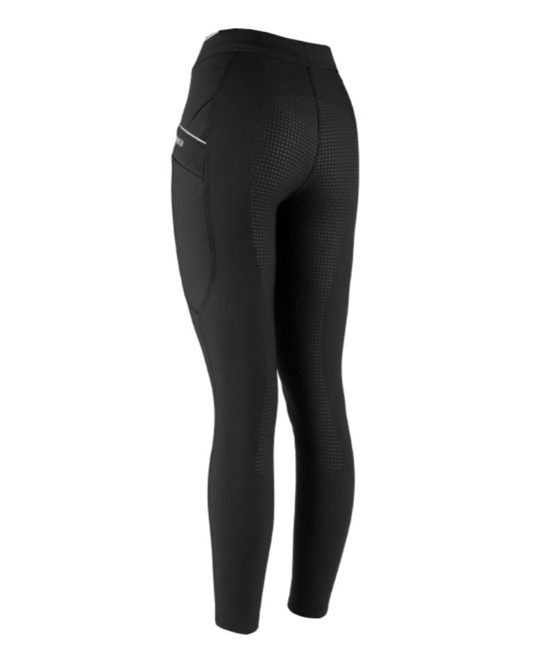Fóðraðar reiðleggings úr vatnsfráhrindandi softshell efni með flísáferð að innanverðu. Háar í mittið og mjög teygjanlegar.