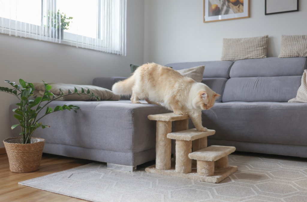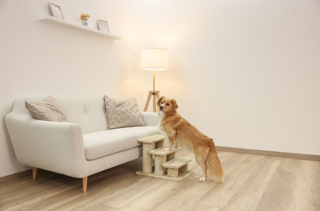 Þrep til að auðvelda gæludýrinu að komast upp og niður úr sófa eða rúmi. Hentar einkar vel fyrir eldri eða veika hunda og ketti.