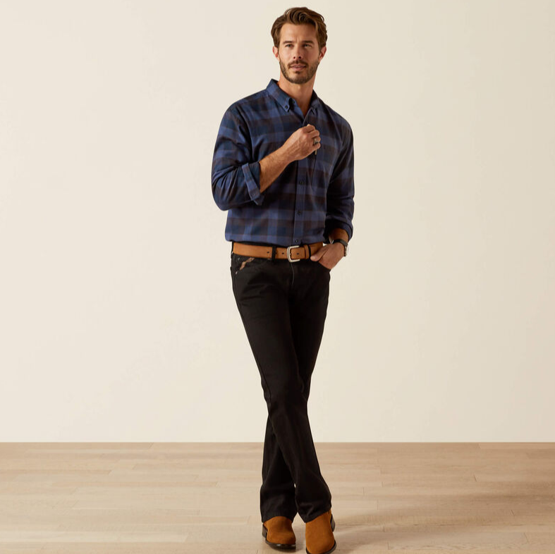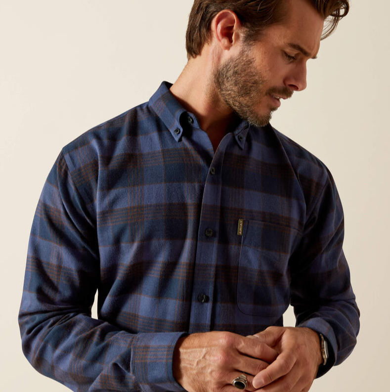 Ariat Simmental skyrtan er saumuð úr mjúkri ullar- og bómullarblöndu sem sameinar hlýju, öndun og náttúrulegan mýkt.