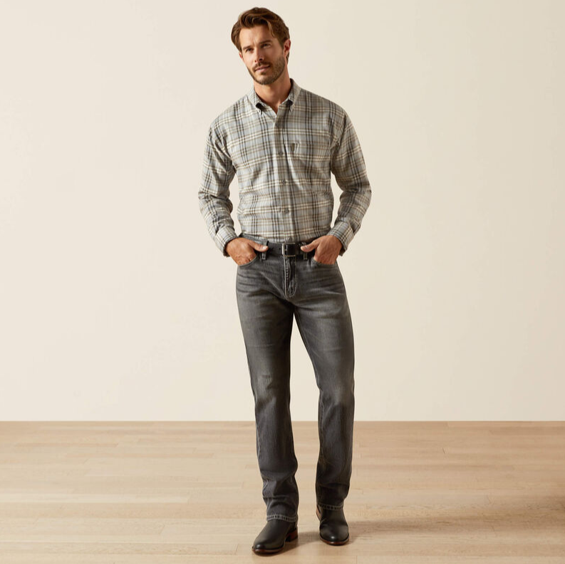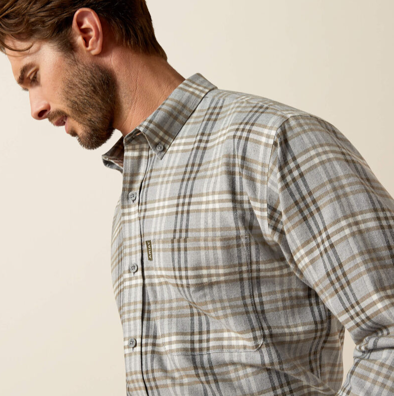 Ariat Simmental skyrtan er saumuð úr mjúkri ullar- og bómullarblöndu sem sameinar hlýju, öndun og náttúrulegan mýkt.