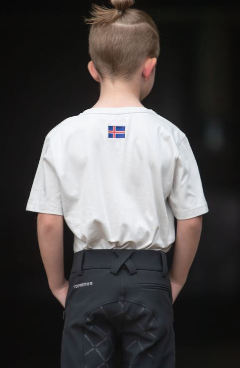 Nafn TR barna stuttermabolur logo greige, 134/140
