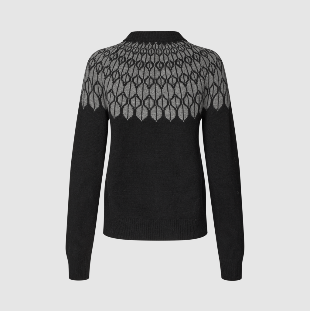 Falleg peysa sem blandar saman íslenska hönnun og nútímalegan stíl. Tilvalin fyrir reiðmennskuna eða aðra útivist.