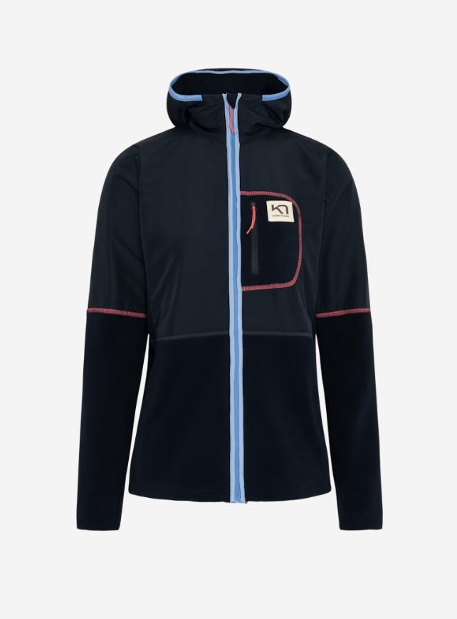 Kari Traa Henriette Hybrid jakkinn hentar vel fyrir kaldari nætur eða morgna. Hlýtt flísefni með fullum rennilás og tvo hliðarvasa, ásamt brjóstvasa sem hægt er geyma lykla, síma eða aðra smámuni í.