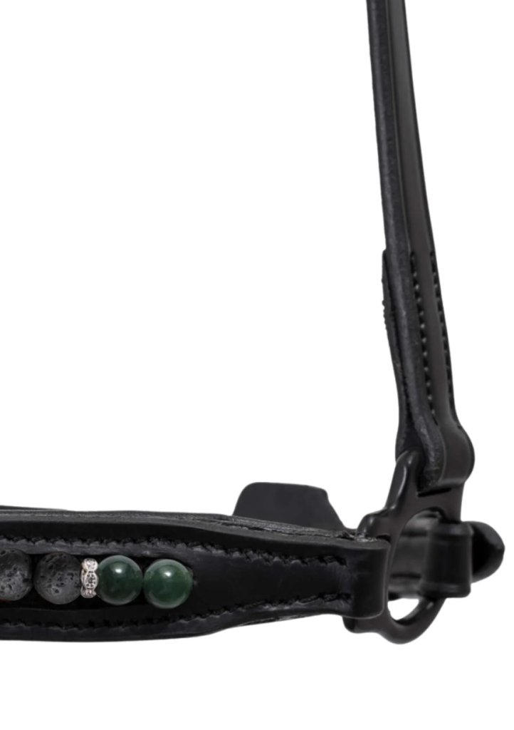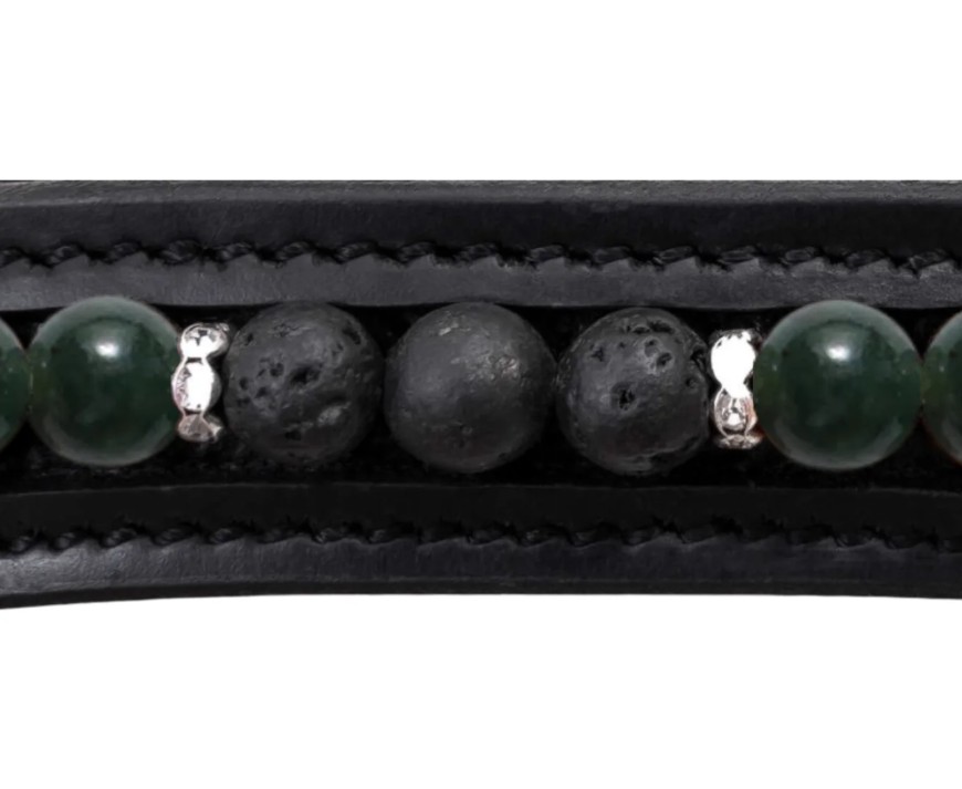 Hágæða nasamúll sem er skreyttur með grænum mosagat, hraunperlum og fíngerðum kristalshringjum sem sameina náttúrulegan glæsileika og íslenskan anda.