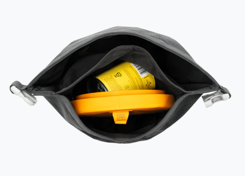 Upprúllaða lokið verndar innihaldið (fyrir leka og forvitnum nefum) og gerir þér kleift að minnka rúmmál pokans eftir því sem þú borðar.
