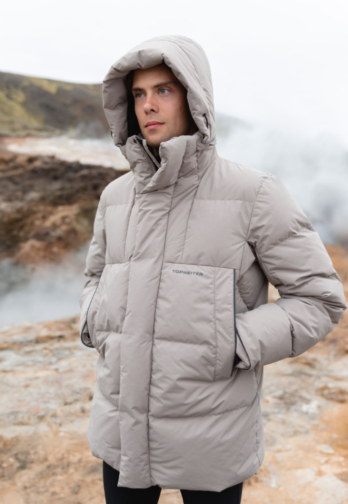 Sjálfbær hlýja: Fóðruð með 90% endurunnnum andadún og 10% endurunnnum fiðri – létt, hlý og þægileg jafnvel í frosti.