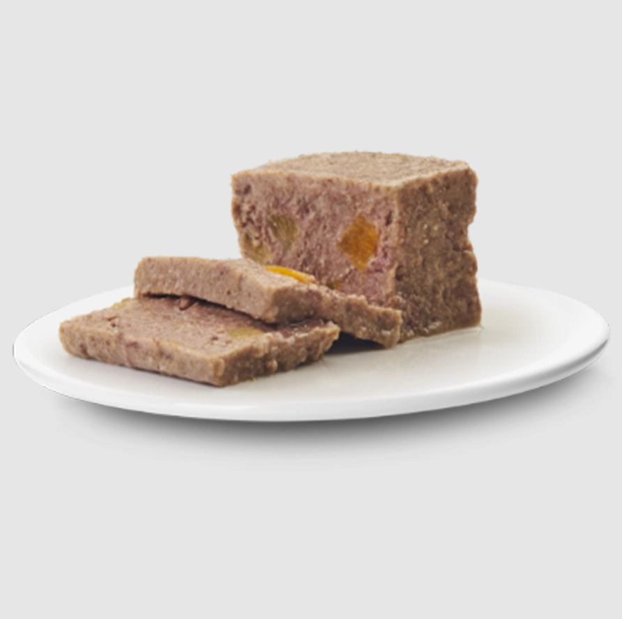 Patéið inniheldur 100% náttúruleg innihaldsefni, er alveg kornlaust og ríkt af tauríni, A- og E-vítamínum og dýrapróteinum.